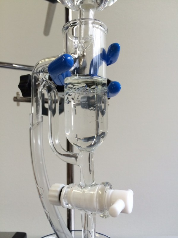 Khi cất tinh dầu, có một phần hơi nước bốc lên theo hơi tinh dầu và cũng ngưng lại trong thùng ngưng cùng với tinh dầu. Vì vậy ở bình hứng, tinh dầu thu được có lẫn một phần nước. Tinh dầu nhẹ hơn nước (tỉ trọng tinh dầu là 0,9), nổi lên trên còn nước ở phía dưới, ta dễ dàng tách được tinh dầu ra khỏi nước bằng dụng cụ tách ly.